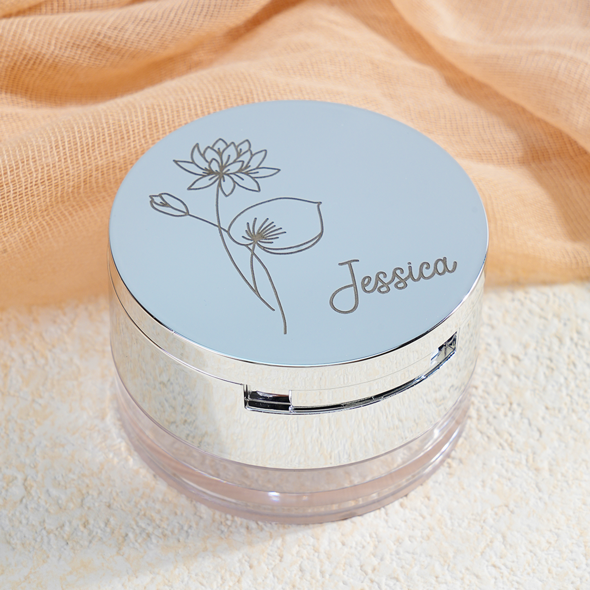 Custom Name Birth Flower Powder Box with Powder Puff & Mirror |